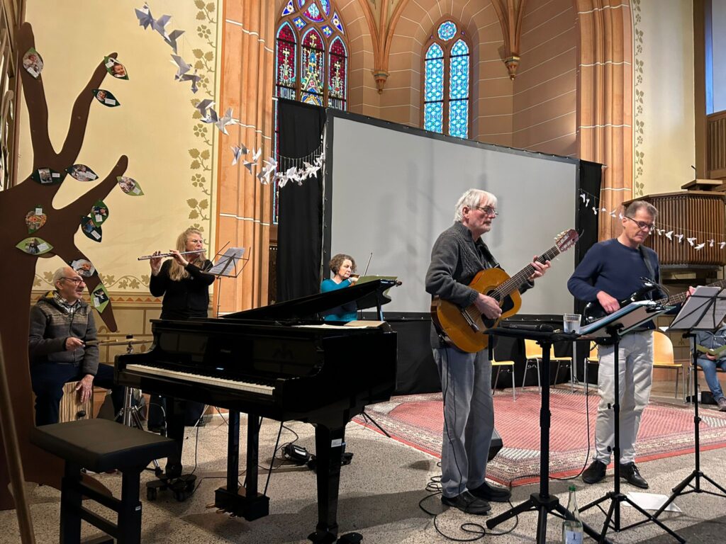 Wir singen mit euch einfache Lieder aus unterschiedlichen Kulturen (christlich, jüdisch, muslimisch, hinduistisch, …) und Stilrichtungen (Choral, Gospel, Mantra, Pop…). An einem leider denkwürdigen Tag (Jahrestag Ukrainekrieg)Initiiert und organisiert von „LaVie e.V.“ – friedensbewegte und musikbegeistere Laien im Umfeld des Wohnprojekts „Vielfalt in Ladenburg“, zusammen mit der evangelischen Kirchengemeinde.
